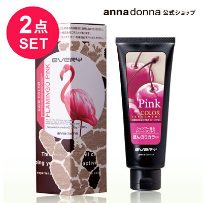 エブリ ヘアカラー (医薬部外品)<フラミンゴピンク>とエブリ カラートリートメント <ピンク>のセット|アンナドンナ annadonna EVERY ヘアカラートリートメント トリートメント ほんのりカラー カラー ピンク 白髪染め エブリヘアカラー ヘア 染め 白髪 髪染め